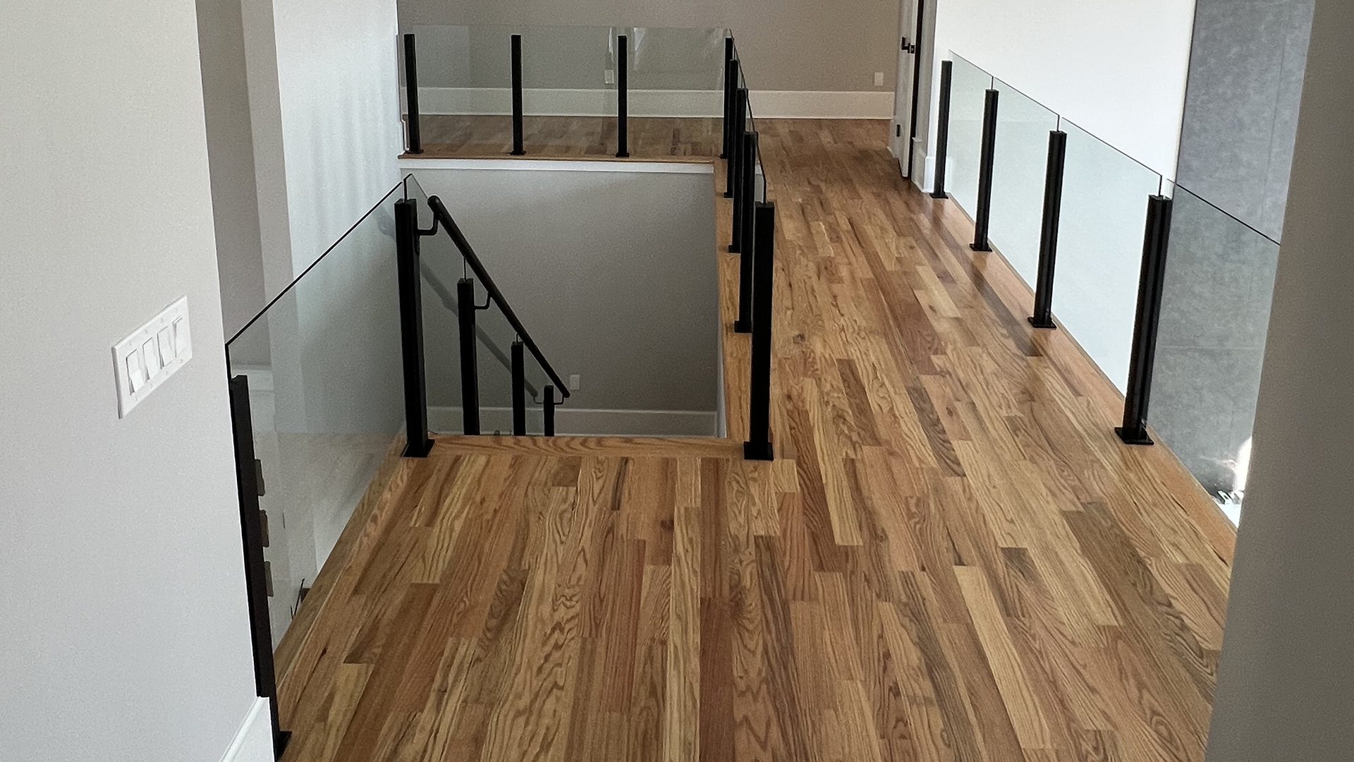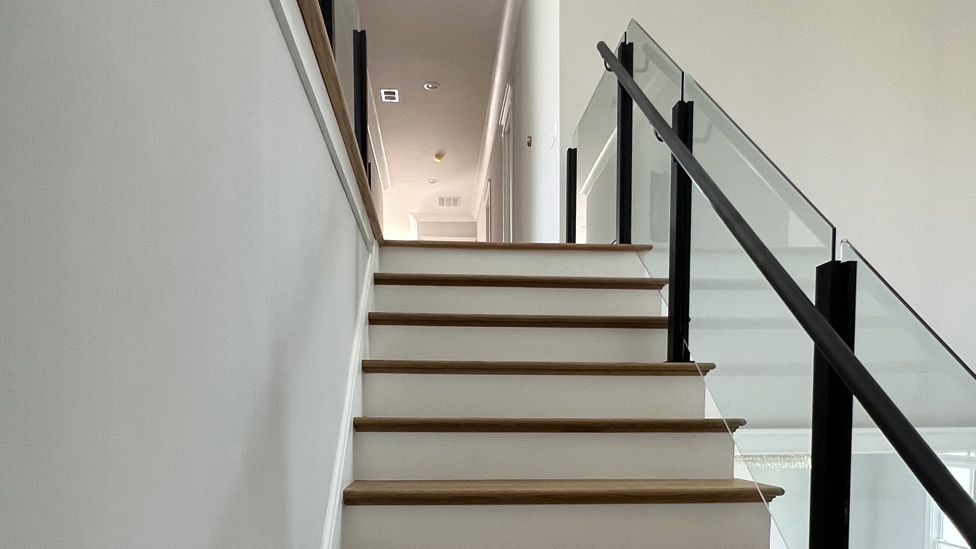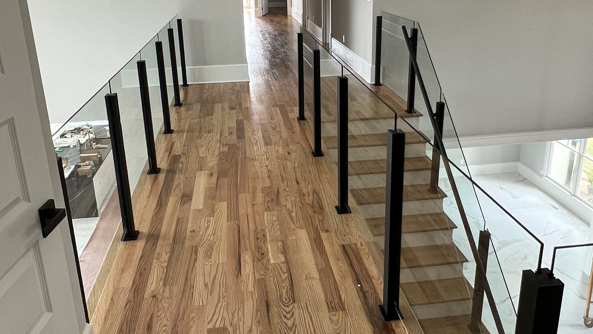 In this stunning new construction in Marietta, Georgia, the “The Standard” System takes center stage, enhancing the modern interior with its clean lines and high-end finishes. The 39” overall height of the railings ensures maximum safety without compromising the open, airy feel of the space. The precision-crafted glass panels provide clear sightlines across the home. Installed along both the stairs and the overlook, this system seamlessly integrates into the architecture, becoming a focal point that ties together the home’s contemporary design. It’s a perfect example of how Falcon Railings combines functionality and style to elevate any project.